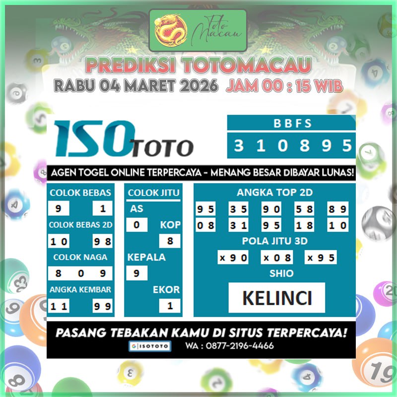 Prediksi Isototo Totomacau Akurat Bisa JP Hari Ini